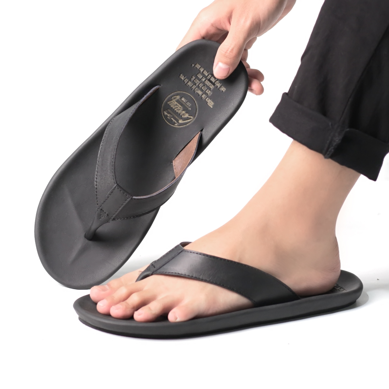 Sandal Gonsu Cevany SC03-V2 menggunakan bahan kulit hitam berkualitas tinggi yang menjadi salah satu keunggulan utamanya. Kulit yang digunakan dipilih secara selektif untuk memastikan tekstur halus dan daya tahan yang optimal. Bahan kulit ini memiliki tingkat elastisitas yang baik sehingga mampu mengikuti bentuk kaki secara alami, memberikan kenyamanan maksimal saat digunakan. Selain itu, kulit hitam ini memiliki keunggulan dalam hal perawatan dan ketahanan terhadap berbagai kondisi cuaca, seperti hujan ringan atau panas terik.